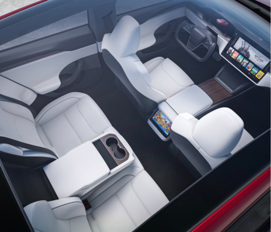 The revised cabin, particularly the new steering wheel, is perhaps the most eye-catching component of the Model S facelift. A yoke that appears to be made for controlling a spacecraft replaces the traditional conventional steering wheel. The center touchscreen has been redesigned in a landscape format similar to that of the Model 3 and Model Y, while the digital instrument cluster has remained mostly intact. We like the new infotainment system a lot. If the automobile doesn’t accurately guess the direction you want to go, there’s a secret hidden shifter. The addition of wood and carbon-fiber trim and a new display for rear-seat passengers give the vehicle a more sophisticated vibe. A new seat arrangement allows backseat travelers a small amount of space that was previously taken away from front passengers.